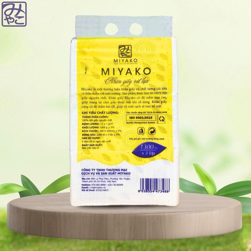 Miyako là thương hiệu chuyên cung cấp các dòng giấy ăn – khăn giấy phục vụ cho gia đình và mô hình quán ăn tại Việt Nam. Các sản phẩm của Miyako được sản xuất từ 100% bột giấy nguyên chất, không bụi giấy và luôn chú trọng độ an toàn, độ mềm và sự ổn định khi sử dụng trong môi trường phục vụ hằng ngày.